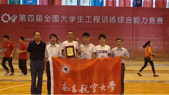 第四届全国大学生工程训练综合能力竞赛于2015年5月24-25日在合肥工业大学举行。清华大学、上海交通大学、哈尔滨工业大学等109所高校的151支队伍经过层层选拔进入决赛。经过两天的激烈竞争,我校由指导老师辛集忠,李文杰与航制学院12级学生樊胜宝,杨德森,宋宁宁同学组成的参赛队脱颖而出,最终以综合成绩排名第六,荣获一等奖。