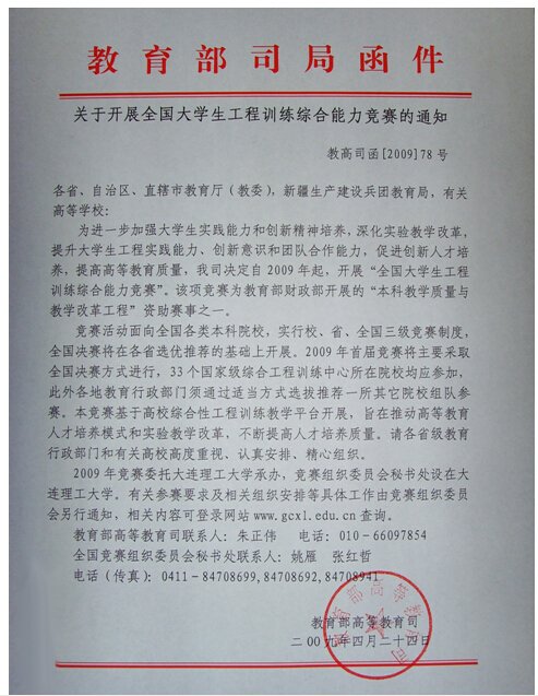 关于开展全国大学生工程训练综合能力竞赛的通知(高教司)